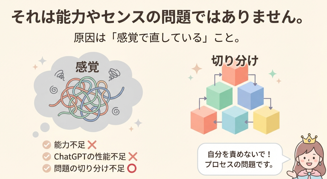 「感覚で直している」ことが原因です。