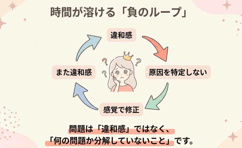 ✅ 違和感のまま直さない感覚で修正すると、時間は溶ける。
