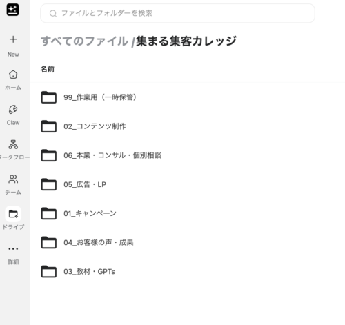 Copy「AI Driveに"集客カレッジ教材"というフォルダを作って」