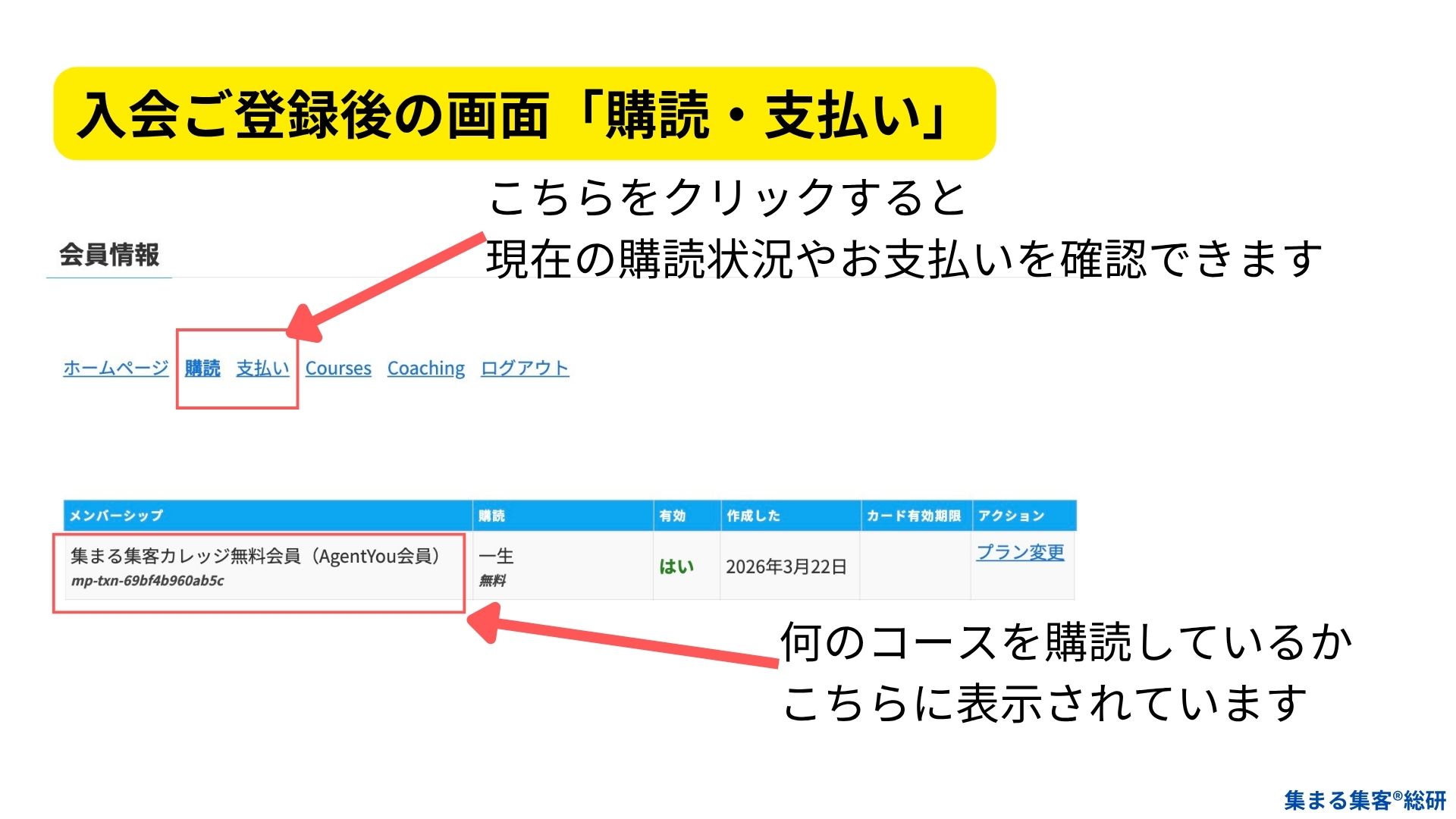 決済が完了すると会員情報を確認できます