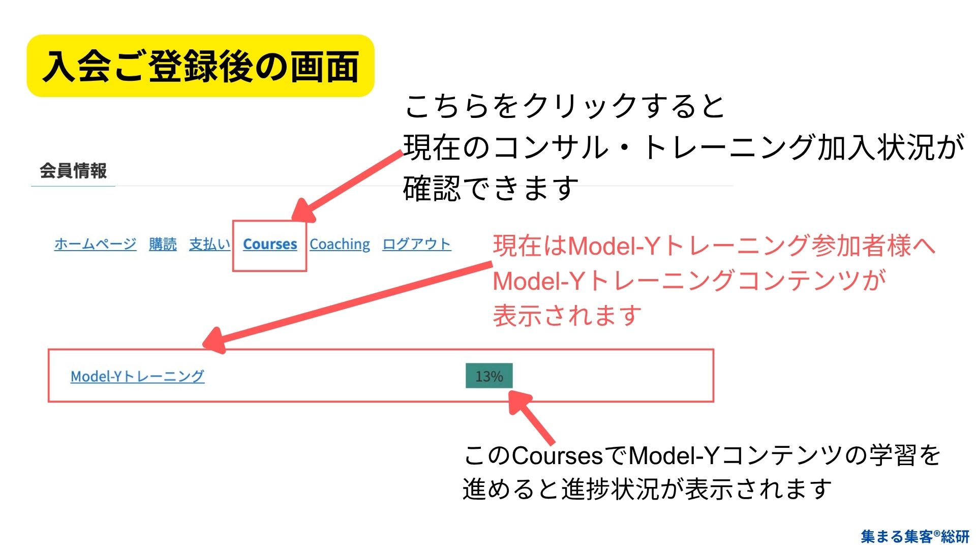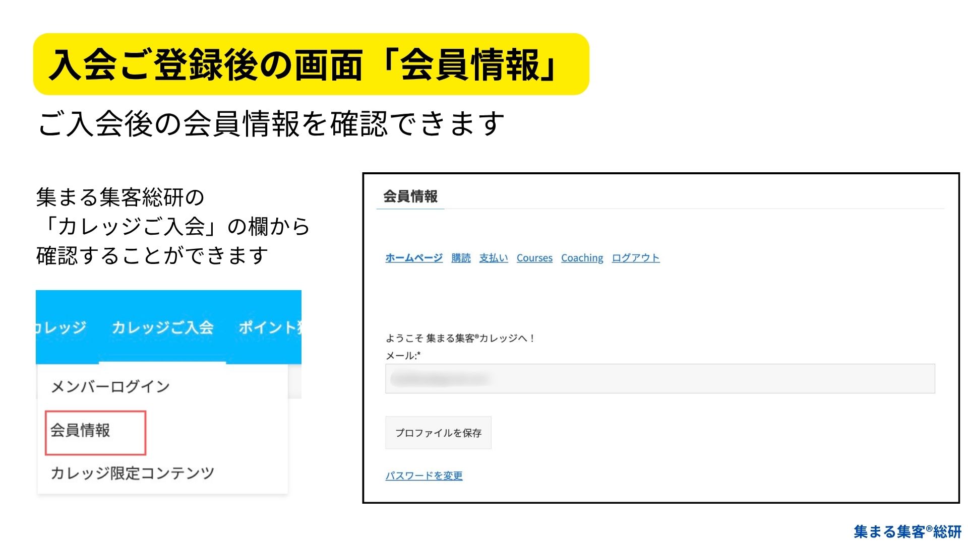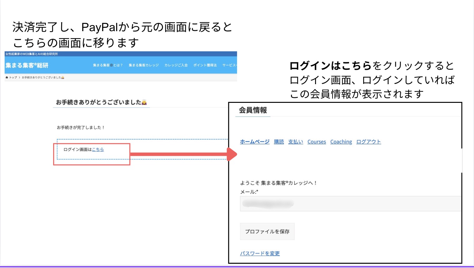 入会後の会員ページの解説