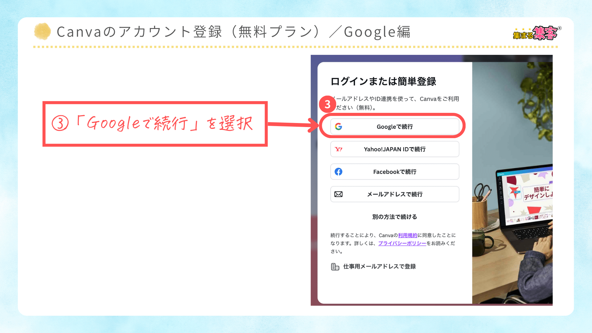 Googleアカウントを使ったCanvaの登録方法を解説していくね!