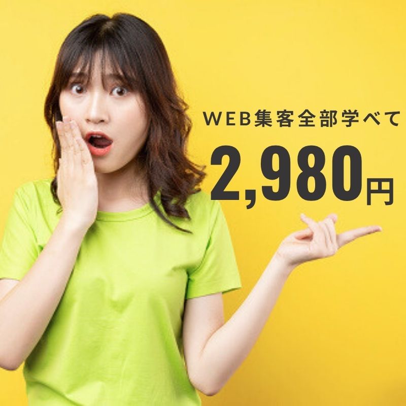 月たった2,980円で集客に必要な学びを網羅!しかも必要な学びを順序通りに進めるだけで、WEB集客がスッと理解できる!SNS・SEO・広告全部を学べるのはここだけ!