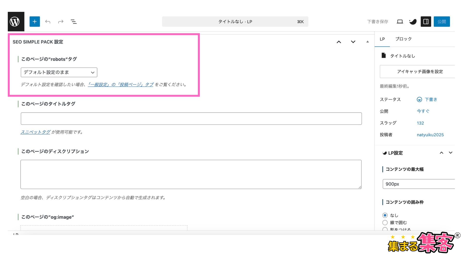 LPページをいつもno indexにしたいときはこちらがおすすめ。