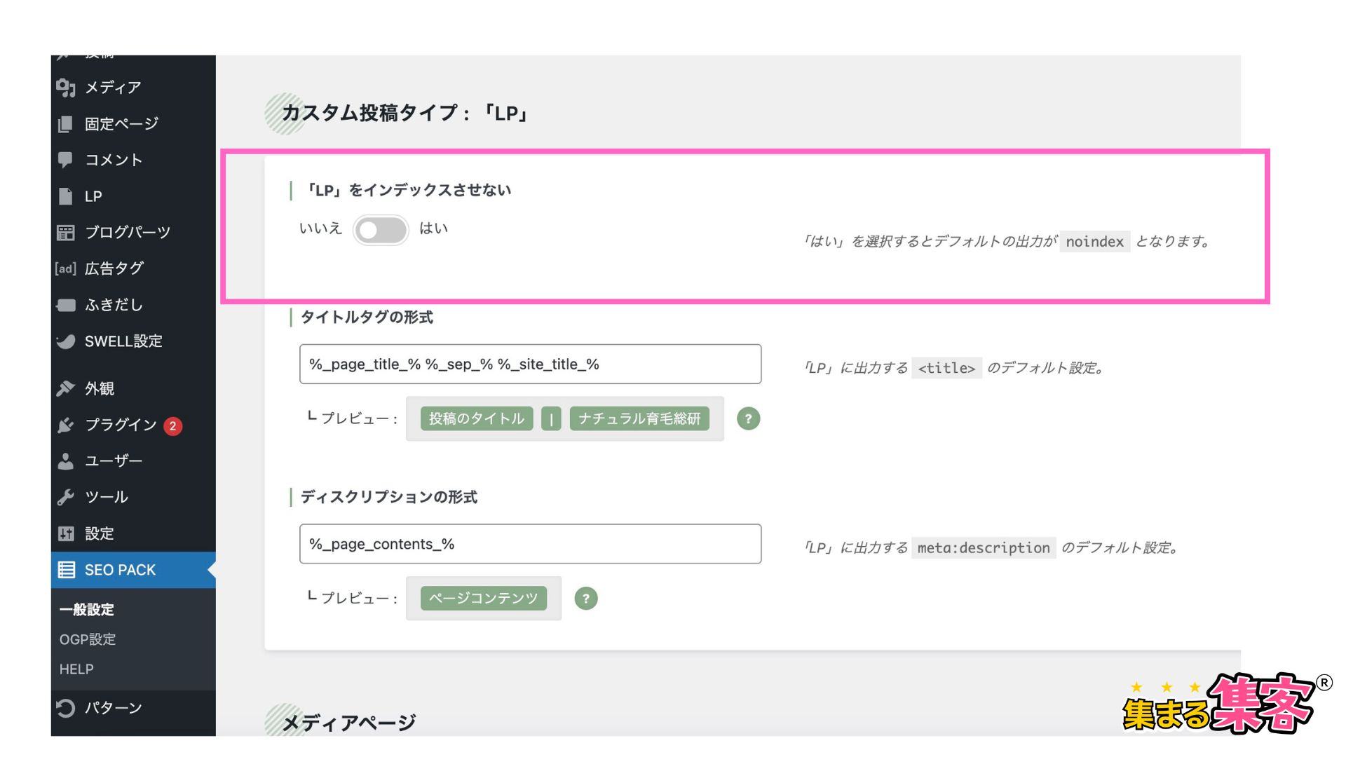 SEO SIMPLE PACKでno indexデフォルト設定をするとき