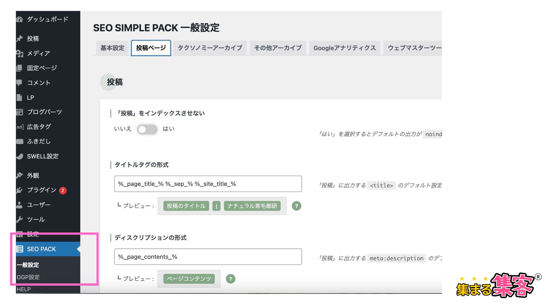 SEO SIMPLE PACKの一般設定から