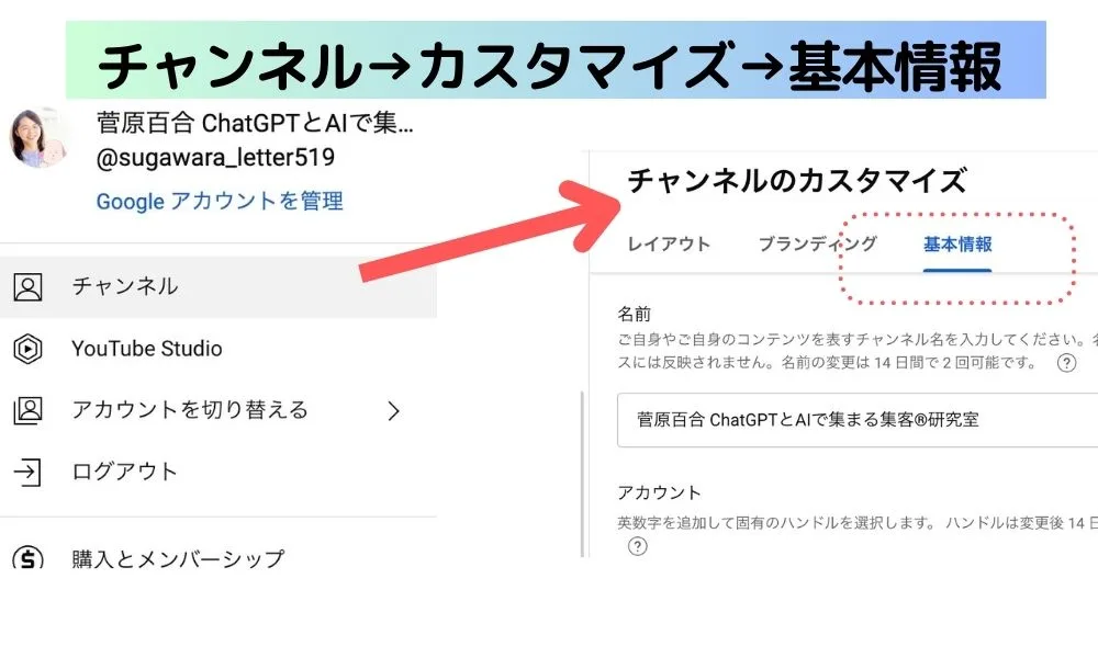 もしアカウント情報を書き換えたくない場合は、新しいチャンネルを作成するというやり方もあるよ。